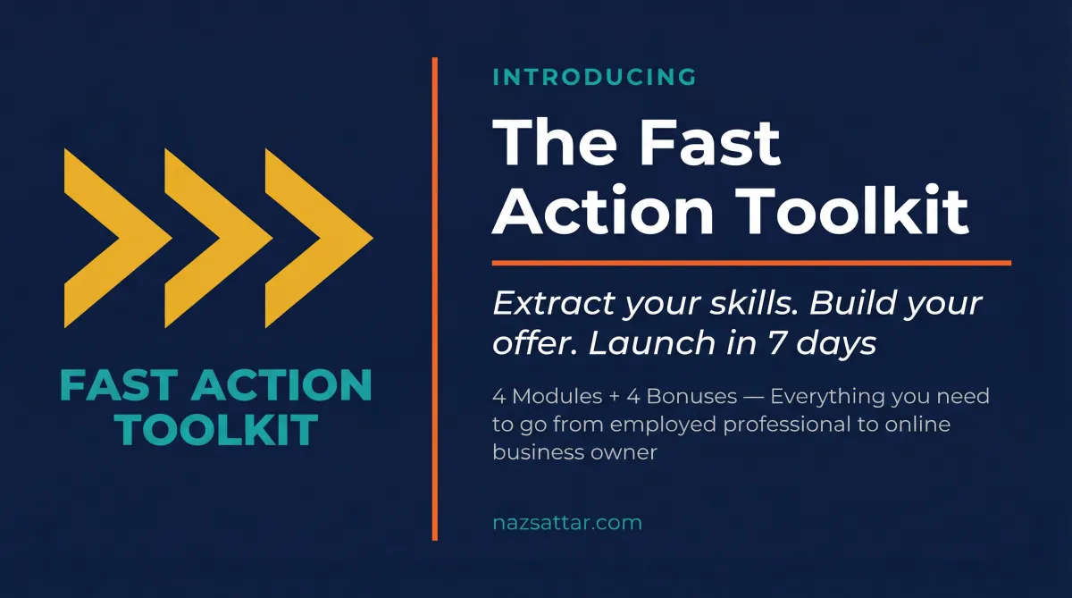 Path 2: Get the Fast Action Toolkit today. Within 7 days you could have a real, packaged, priced offer built around what you already know — and a clear plan to get it in front of the right people.